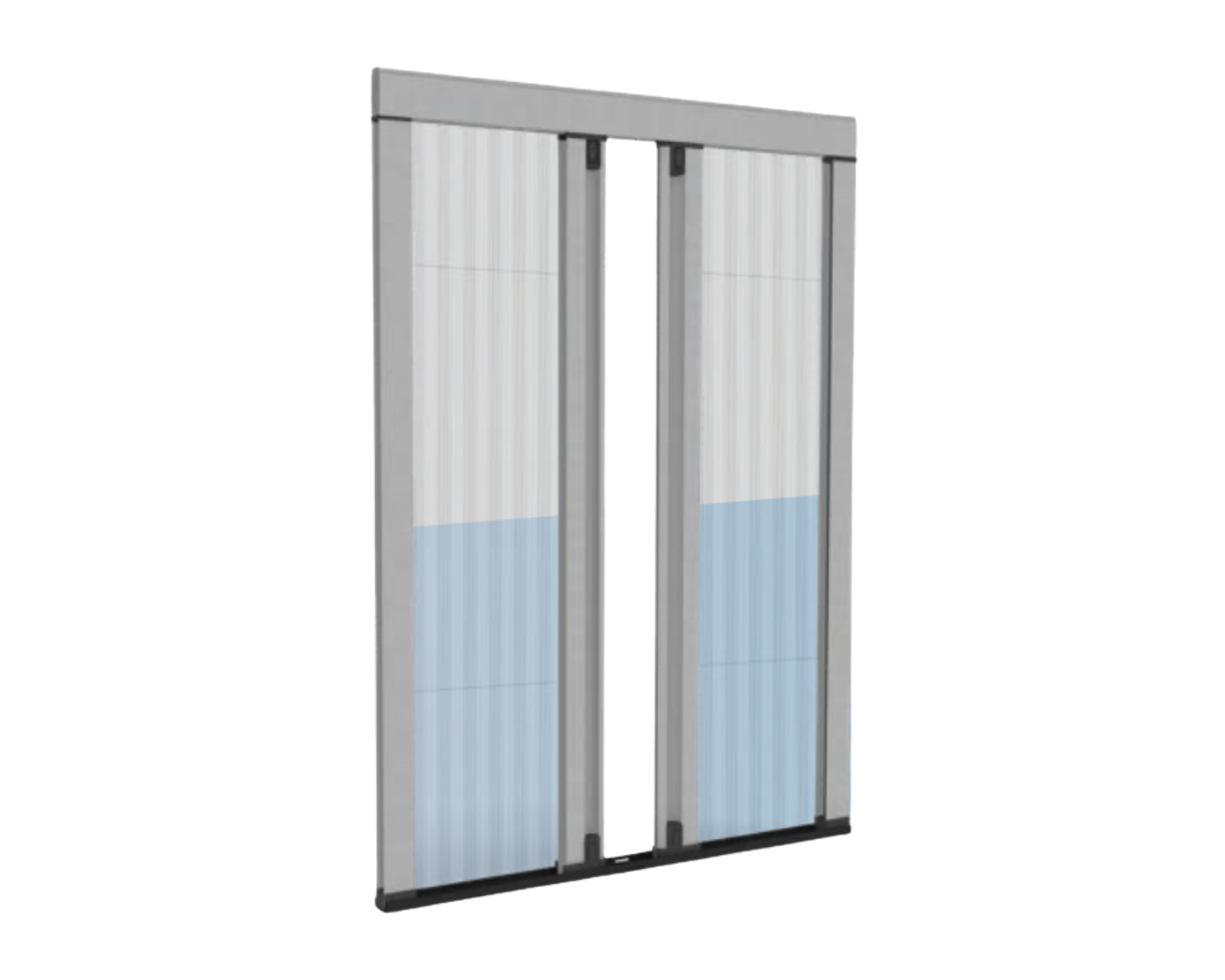 Zanzariera plissettata ad apertura laterale controllatae ingombro ridotto
